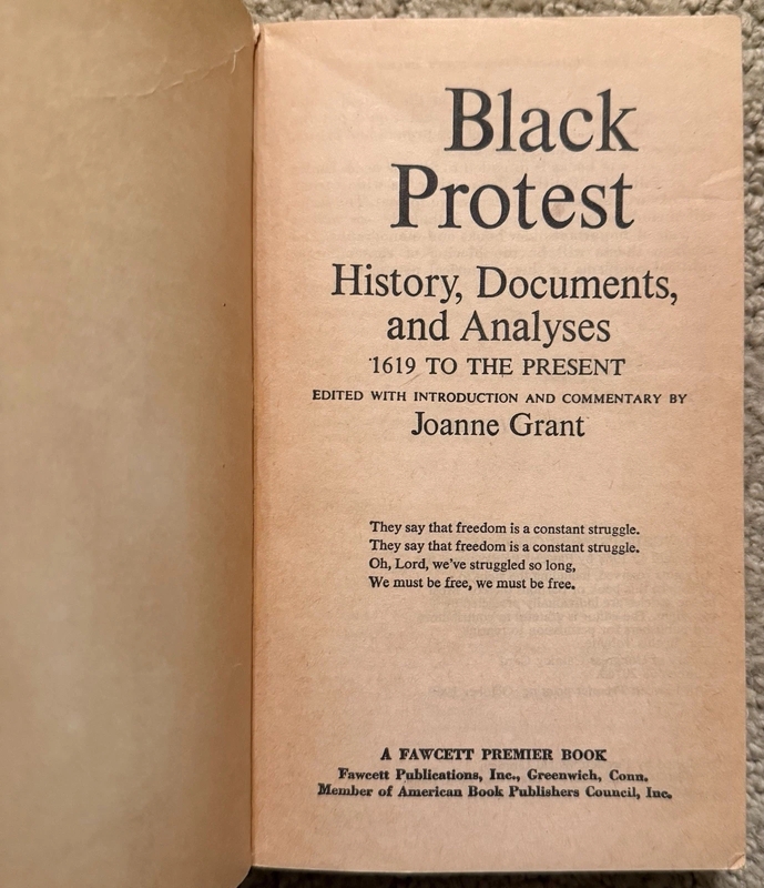"Black Protest: History, Documents, and Analyses, 1619 to the Present". Ed. Joanne Grant. New York: Fawcett, 1968. 505 pp.
