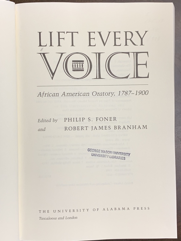 "Lift Every Voice: African American Oratory, 1787-1900" . Ed. Philip S. Foner and Robert James Barnham. Tuscaloosa: U of Alabama P, 1998. xv+925 pp.
