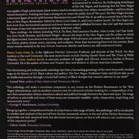 • "When African American intellectuals announced the birth of the "New Negro" around the turn of the twentieth century, they were attempting through a bold act of renaming to change the way blacks were depicted and perceived in America. By challenging stereotypes of the Old Negro, and declaring that the New Negro was capable of high achievement, black writers tried to revolutionize how whites viewed blacks--and how blacks viewed themselves. Nothing less than a strategy to re-create the public face of "the race," the New Negro became a dominant figure of racial uplift between Reconstruction and World War II, as well as a central idea of the Harlem, or New Negro, Renaissance. Edited by Henry Louis Gates, Jr., and Gene Andrew Jarrett, The New Negro collects more than one hundred canonical and lesser-known essays published between 1892 and 1938 that examine the issues of race and representation in African American culture" (publisher's description).