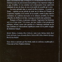 "Black Feminism: Anthologie du féminisme africain-américain, 1975-2000" . Ed. Elsa Dorlin. Paris: L'Harmattan, 2008. 260 pp.