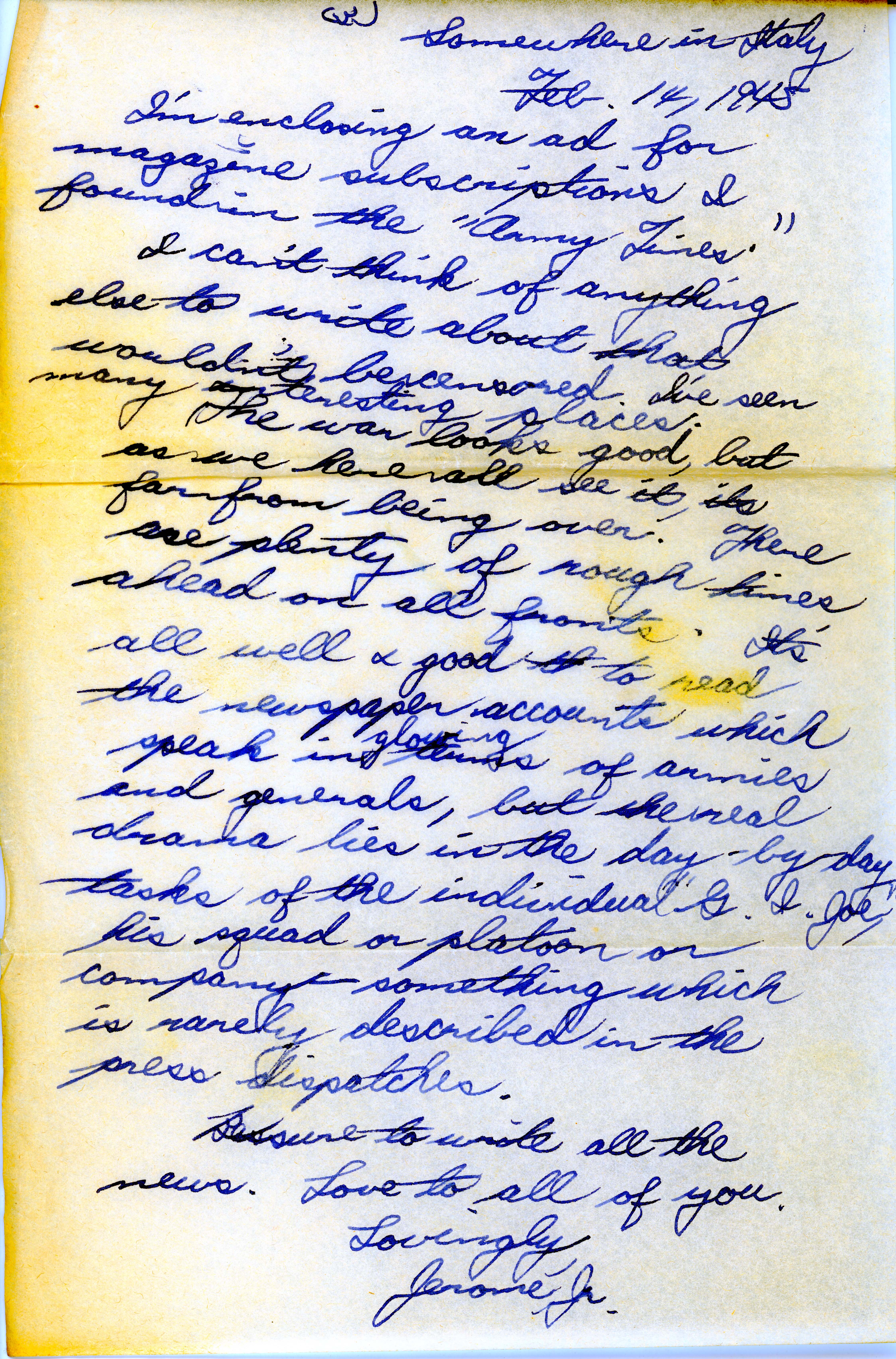 Letter from Jerome Epstein, Jr. to Mr. and Mrs. Jerome Epstein and Mr. Louis Green, dated February 14th, 1945