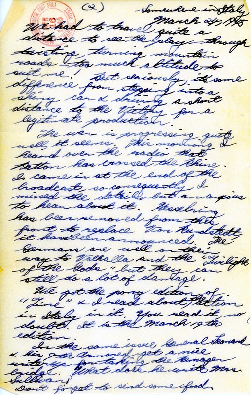 We got the pony edition of “Time” and I read about, the action in Italy in it. You read it, no doubt. It is the March 19th edition.