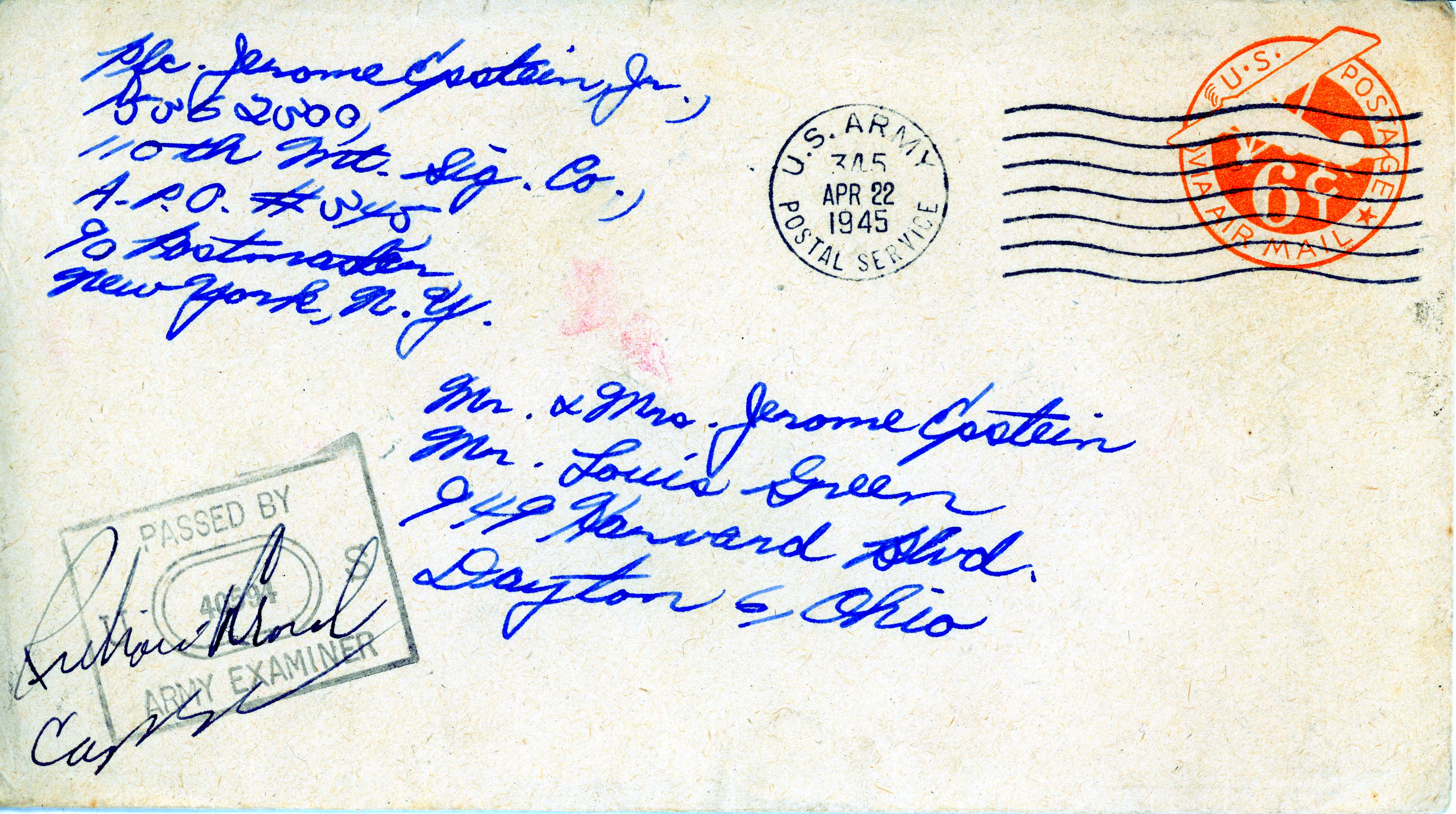 Letter from Jerome Epstein, Jr. to Mr. and Mrs. Jerome Epstein and Mr. Louis Green, dated April 20th, 1945