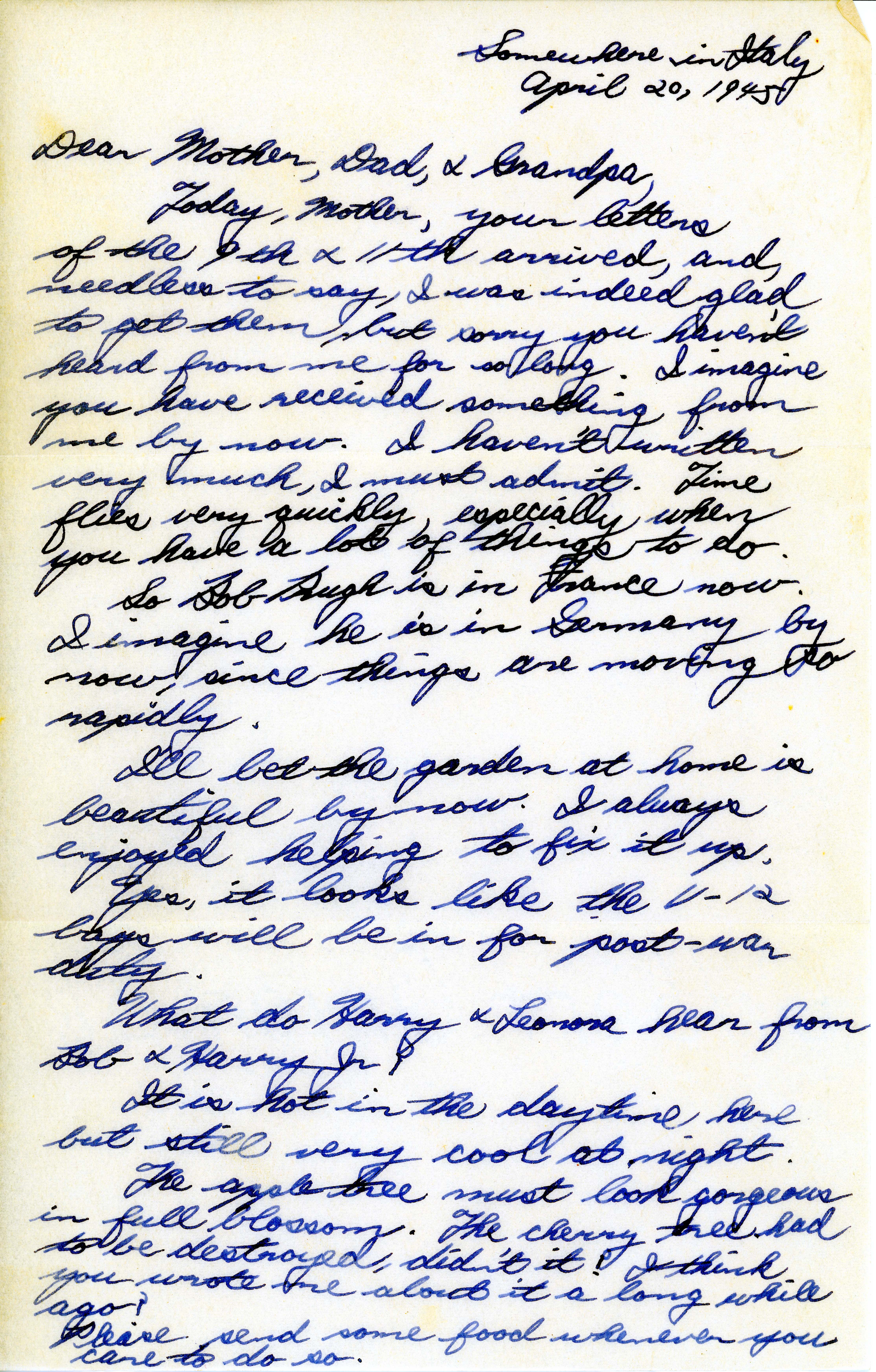 Dear Mother, Dad, and Grandpa,